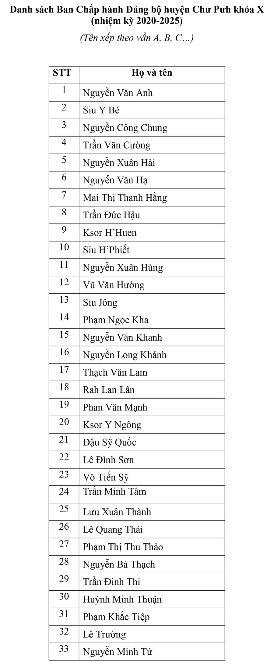 Với tinh thần trách nhiệm cao, các đại biểu đã sáng suốt bầu 33 đồng chí tiêu biểu, đủ đức, đủ tài, thực sự có năng lực, uy tín vào Ban Chấp hành Đảng bộ huyện khóa X (nhiệm kỳ 2020-2025). Đồng thời, Đại hội đã tiến hành lấy phiếu giới thiệu nhân sự chức danh Bí thư Huyện ủy khóa X đối với ông Huỳnh Minh Thuận-Bí thư Huyện ủy khóa IX.
