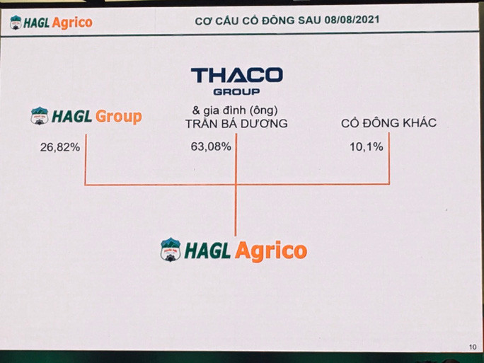 Sau khi hoàn tất việc mua cổ phần tại 4 công ty của bầu Đức, ông Trần Bá Dương, Chủ tịch HĐQT Công ty CP Ôtô Trường Hải (Thaco), đã được bầu làm Chủ tịch HĐQT Công ty CP Nông nghiệp Hoàng Anh Gia Lai (HNG).