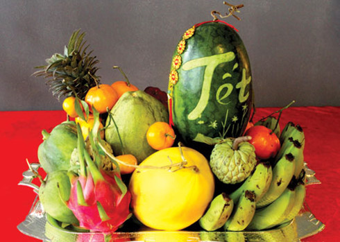 Bưởi, dưa hấu: căng tròn, mát lành, hứa hẹn sự ngọt ngào, may mắn.
