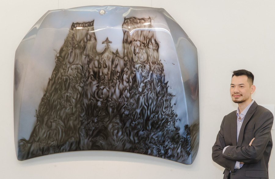 | Giải thưởng cao nhất đã thuộc về nghệ sĩ Trịnh Minh Tiến với tác phẩm Thủy phủ, mức thưởng cao nhất trị giá 500 triệu đồng. Thủy phủ (trái) là hình ảnh của Nhà thờ lớn Hà Nội trong mưa in bóng trên kính ôtô, được người nghệ sĩ tái hiện trên nắp capô. Anh có hơn chục năm theo đuổi phong cách vẽ bằng súng phun sơn trên vỏ xe ô tô. “Cuộc thi đã mang lại giá trị không chỉ từ góc độ cộng đồng mà còn nuôi dưỡng các tài năng nghệ thuật tiềm năng, tạo động lực giúp nghệ sĩ phát triển nghề nghiệp và tỏa sáng”, nghệ sĩ Trịnh Minh Tiến chia sẻ |