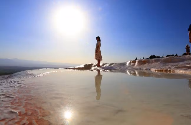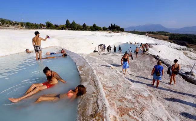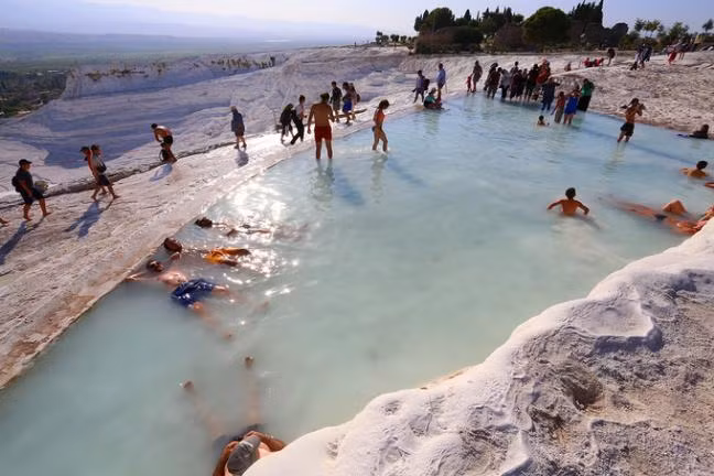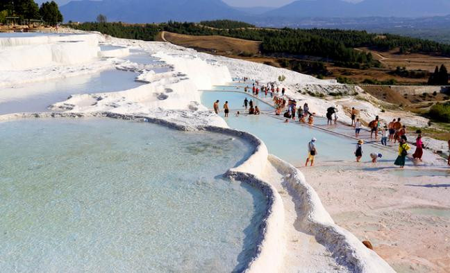 Bể bơi thiên nhiên ở "lâu đài bông" Pamukkale là một trong những điểm đến hấp dẫn du khách tại Thổ Nhĩ Kỳ.
