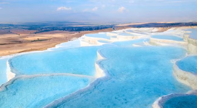 Xếp thành tầng tựa như ruộng bậc thang ở miền núi phía bắc Việt Nam, những bể bơi nước nóng tự nhiên Pamukkale còn được biết đến với cái tên "lâu đài bông" (Cotton Castle) trong tiếng Thổ Nhĩ Kỳ. Đây là điểm đến hút khách bậc nhất của tỉnh Denizli, miền tây Thổ Nhĩ Kỳ, đồng thời cũng có tên trong danh sách di sản thiên nhiên thế giới năm 1988 của UNESCO.