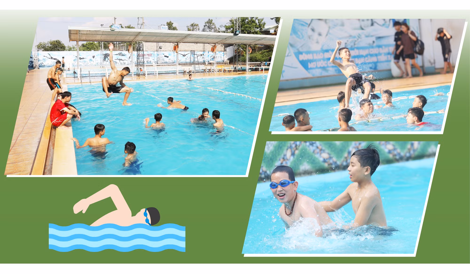 Ở vùng “chảo lửa” Krông Pa, nhiệt độ những ngày qua thường xuyên duy trì ở mức 38-40 độ C. Do đó, nhiều người cũng đã chọn bể bơi là địa điểm lý tưởng để xua tan cái nóng bức khó chịu. Anh Trần Oai Doanh-Chủ hồ bơi Minh Trí (thị trấn Phú Túc) thông tin: “Gia đình tôi là hộ đầu tiên làm hồ bơi ở thị trấn Phú Túc và có quy mô lớn nhất với 2 bể cho người lớn và trẻ em. Lượng khách đến bơi khá đông, chủ yếu vào dịp thứ bảy, chủ nhật với khoảng hơn 100 người ở cả thị trấn và các xã. Một số người trước kia bơi ở sông suối nhưng tiềm ẩn nguy hiểm nên cũng đã tìm đến bể bơi. Chúng tôi cũng phối hợp với huyện tổ chức giải bơi để đẩy mạnh phong trào, tạo ra thói quen bơi hàng ngày cho người dân, đồng thời nhận dạy bơi miễn phí cho trẻ em nghèo ở địa phương”.