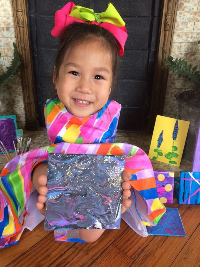 Bé gái không tay gốc Việt vẽ tranh ở Mỹ