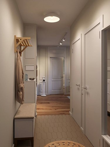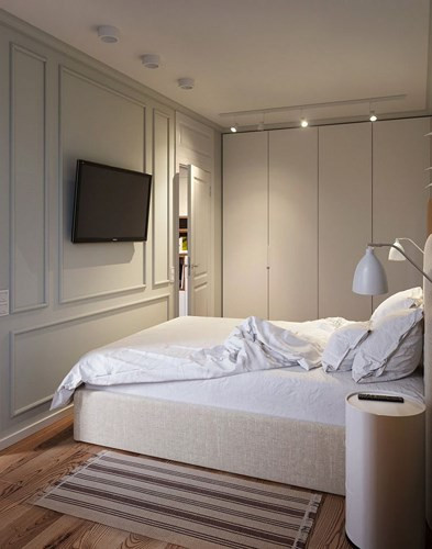 Trong mỗi phòng ngủ, tủ quần áo được lắp liền với tường để không tốn nhiều diện tích.