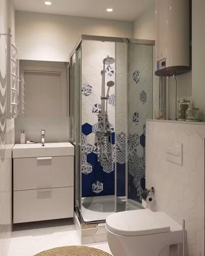 Kiến trúc sư đã lắp đặt bồn cầu treo, cabin tắm vừa đảm bảo nhu cầu sinh hoạt, vừa tiết kiệm không gian.