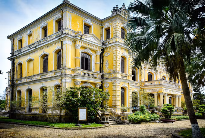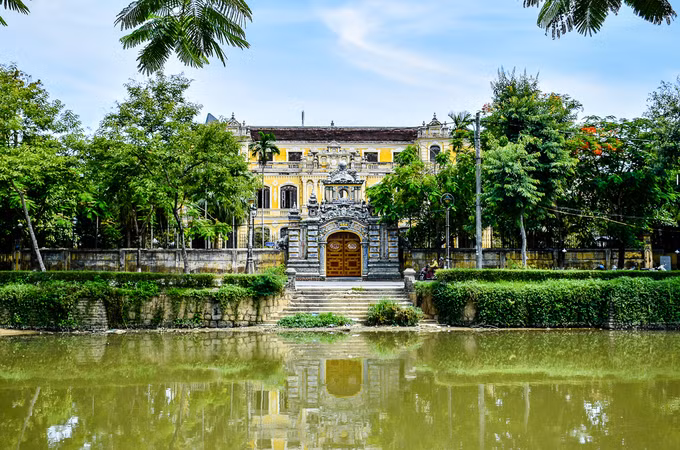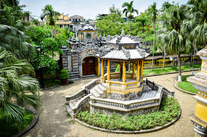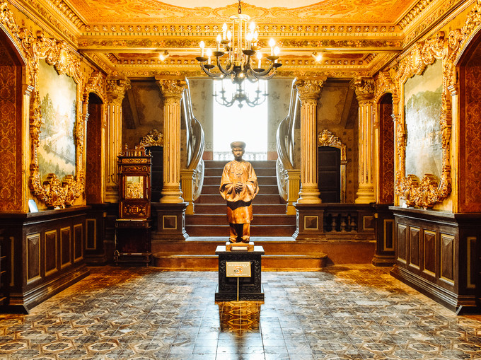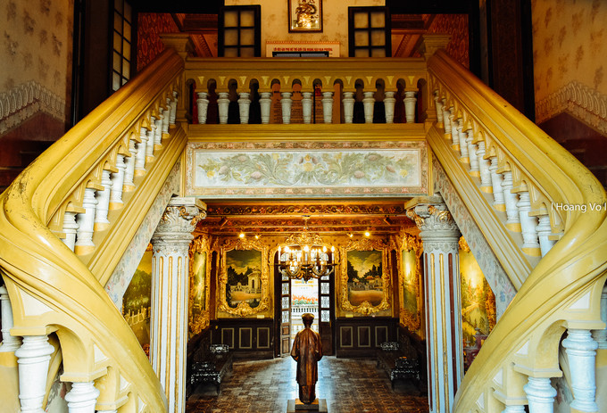 Cung điện được vua Khải Định cho xây năm 1917 là sự kết hợp độc đáo của ba phong cách kiến trúc Huế, Trung Quốc và Pháp.