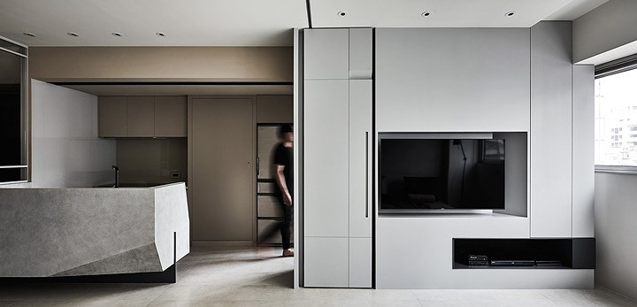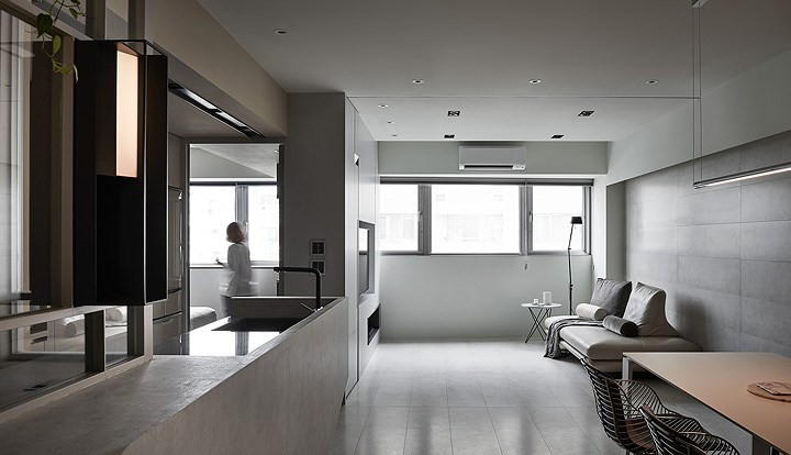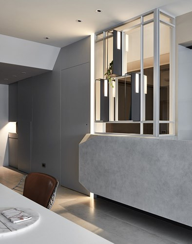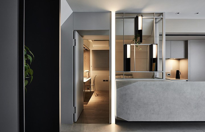 Bằng việc sử dụng khái niệm góc cũng như hệ thống đèn, không gian trong nhà mang đến vẻ lạ lẫm, khác biệt.