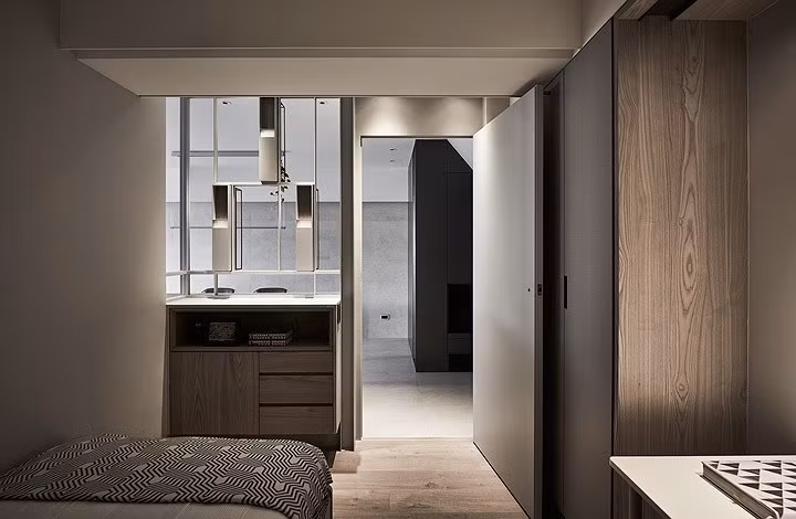 Những thanh treo cũng chính là những cửa sổ để phân chia không gian phòng ngủ.