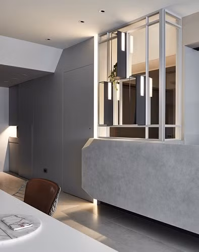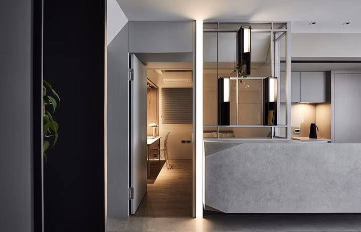 Sử dụng những bóng đèn tuyến tính, đèn hộp treo tường và đèn nền đã tạo nên sự khác biệt trong không gian.