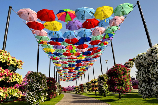 Đây là khu vườn hoa tự nhiên nằm ngay giữa sa mạc có quy mô lớn nhất thế giới, với diện tích 72.000 m2 và trưng bày hơn 60 triệu bông hoa có màu sắc rực rỡ.