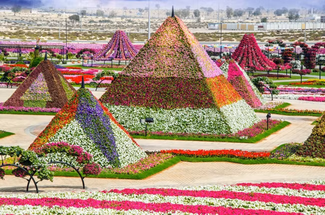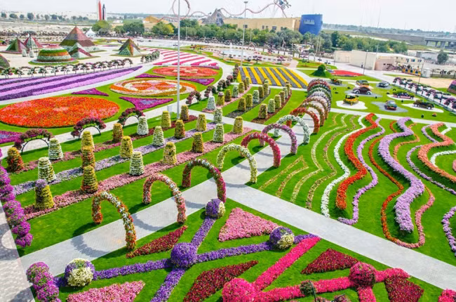 Nằm sâu trong sa mạc, với diện tích hơn 7 ha, Dubai Miracle là vườn hoa lớn nhất thế giới đón hàng triệu lượt khách mỗi năm.