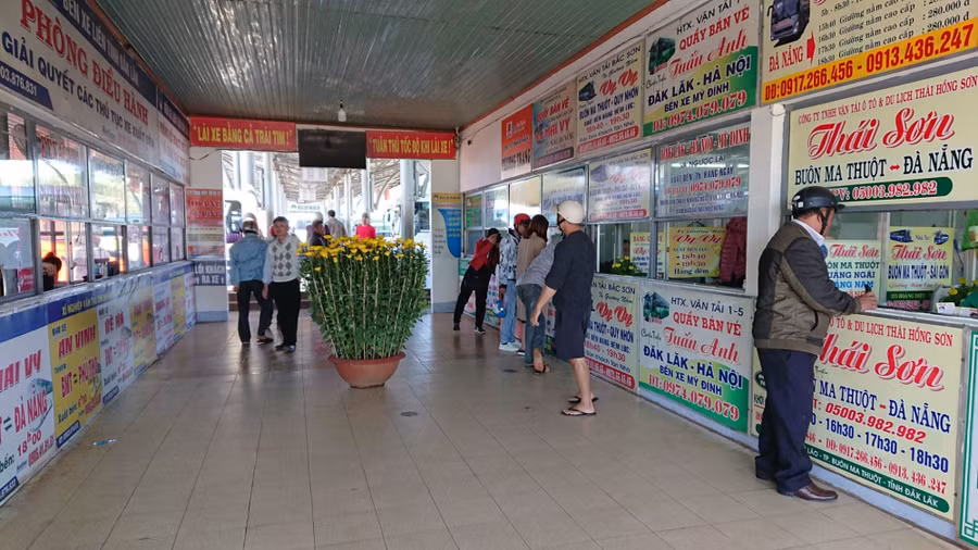 Sáng 2/2, tại Bến xe phía Bắc (TP Buôn Ma Thuột), không còn cảnh tượng người người chen chúc nhau mua vé, ra xe để chuẩn bị chuyến hành trình về quê. Lượng khách ít ỏi, thưa thớt nên tại các quầy bán vé, nhân viên khá nhàn rỗi.