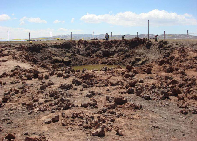 Hố thiên thạch Carancas vài tuần sau vụ va chạm.