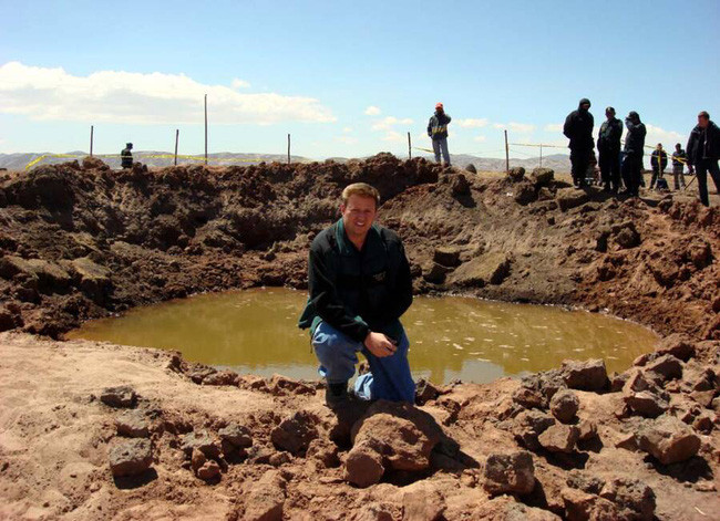 Những thợ săn thiên thạch như Michael Farmer (trong ảnh) đến Carancas từ khắp nơi trên thế giới để thu thập những mảnh đá vũ trụ bất thường. Ảnh: meteoriteguy.com