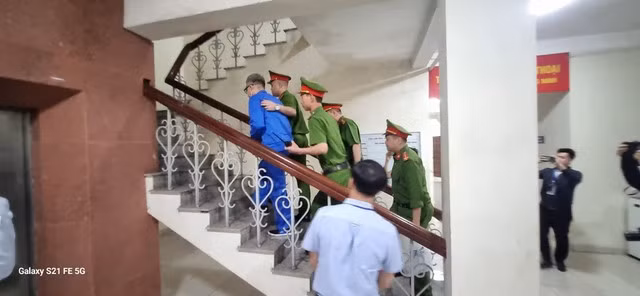 | Các bị cáo được lần lượt dẫn giải vào phòng xử án. |