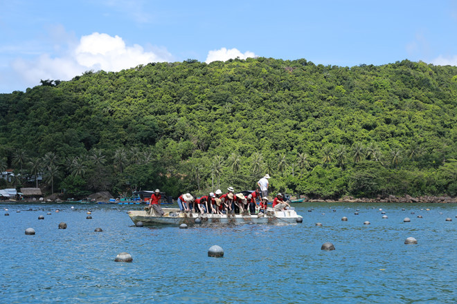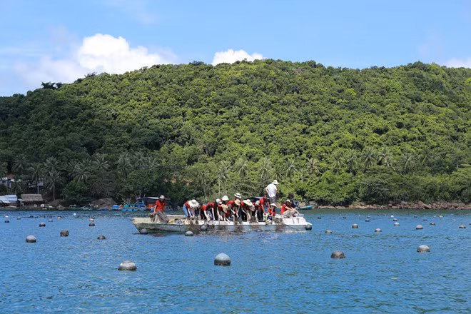Vua” ngọc thường ở ngoài biển cùng công nhân để kiểm tra ngọc trai nuôi