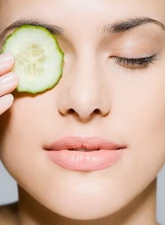 Nếu khuôn mặt kém xinh vì xuất hiện nhiều quầng thâm xung quanh mắt, bạn chỉ cần thái 2 lát dưa chuột lạnh đắp lên mắt từ 10 đến 15 phút. Với các chất có tác dụng làm lưu thông mạch máu, dưa chuột là phương pháp hữu ích giúp bạn cải thiện tình trạng trên.