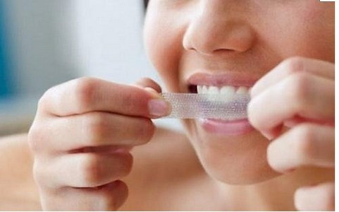 Làm trắng răng bằng miếng dán tẩy răng chuyên dùng