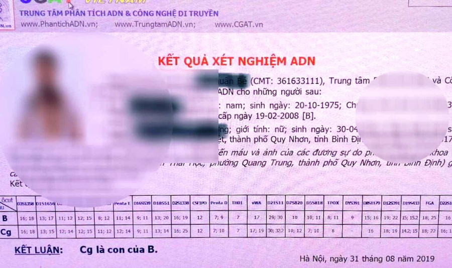 Ông B cùng người thân đã ra TP.Quy Nhơn để yêu cầu bà V đưa con gái đi xét nghiệm cùng. Tuy nhiên, bà V lại dẫn đến một phòng khám tư ở TP.Quy Nhơn, không có chức năng xét nghiệm ADN rồi lấy máu, sau đó gửi ra Hà Nội xét nghiệm.