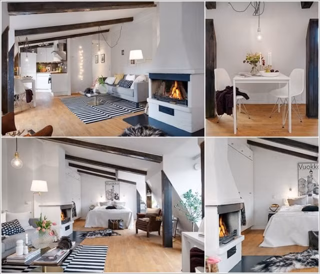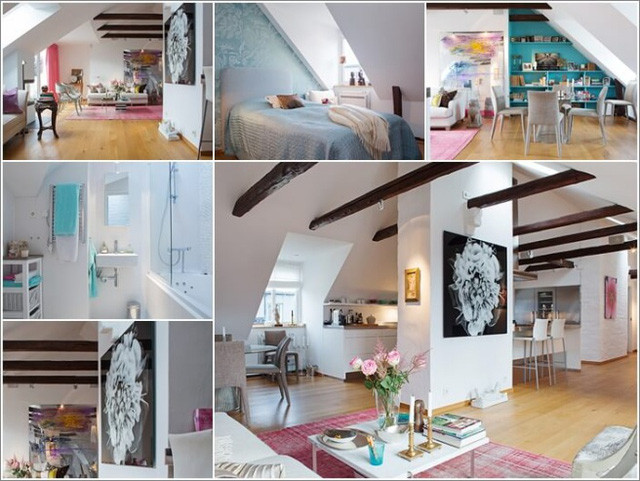 Sử dụng toàn bộ không gian với màu xuyên suốt, bạn sẽ có ngay một căn hộ áp mái rộng thoáng và tràn ngập ánh sáng. Thêm vào đó, căn hộ nhỏ sẽ đẹp ấn tượng khi được "đánh dấu" bằng những điểm nhấn màu sắc, tuy nhỏ nhưng vẫn đủ khiến căn hộ đẹp sang trọng.