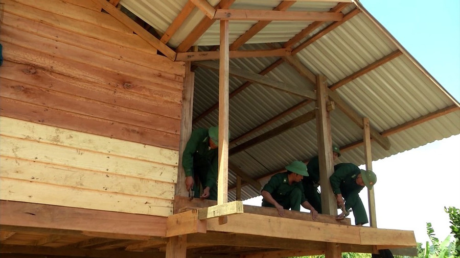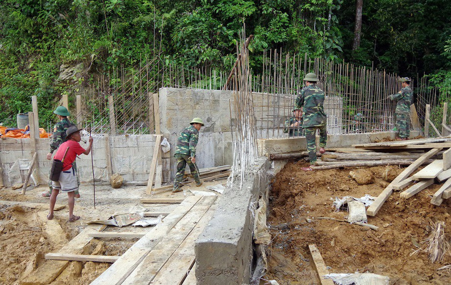 | Bộ đội Biên phòng Việt Nam hỗ trợ người dân khu vực biên giới nước bạn Lào xây dựng các công trình dân sinh |
