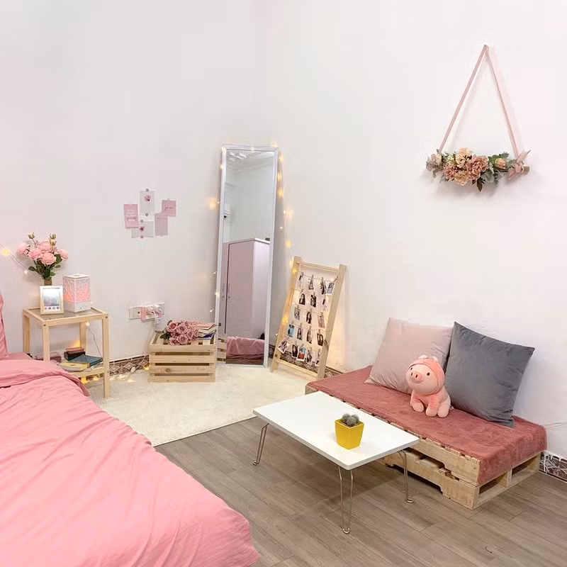 | Từ căn phòng cũ không mấy nổi bật, cô gái đã bỏ ra 6 triệu để cải tạo căn phòng trọ trở nên đẹp lung linh với tông màu hồng công chúa. |