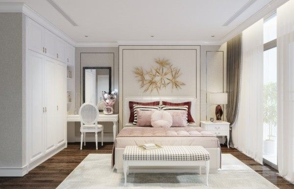 Đối xứng và cân bằng: Đây là nét đặc trưng của phong cách bán cổ điển. Đồ nội thất được sắp xếp để đảm bảo tính hài hòa cho căn phòng.
