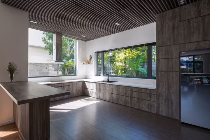 Bếp được thiết kế thoáng, tối giản.