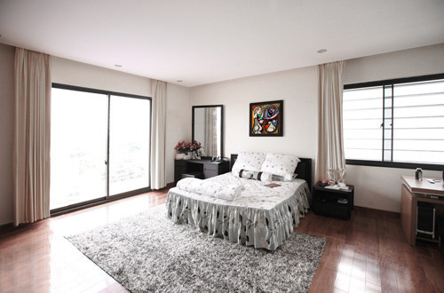 Phòng ngủ trên tầng 2 ngập ánh sáng.