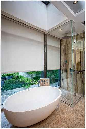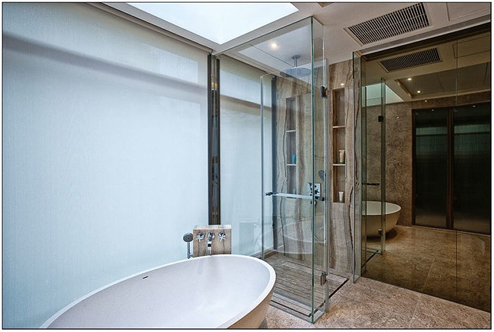 Phòng tắm sử dụng những vật liệu hiện đại, cùng sự hài hòa trong hòa phối màu sắc đảm bảo sự tiện nghi về công năng sử dụng cũng như tính thẩm mỹ cho công trình.