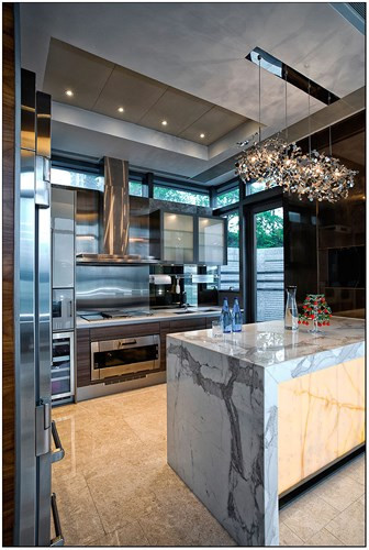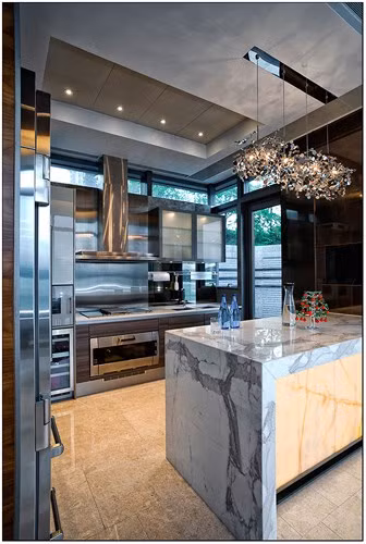 Góc bếp hiện đại bằng đá cẩm thạch.