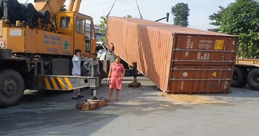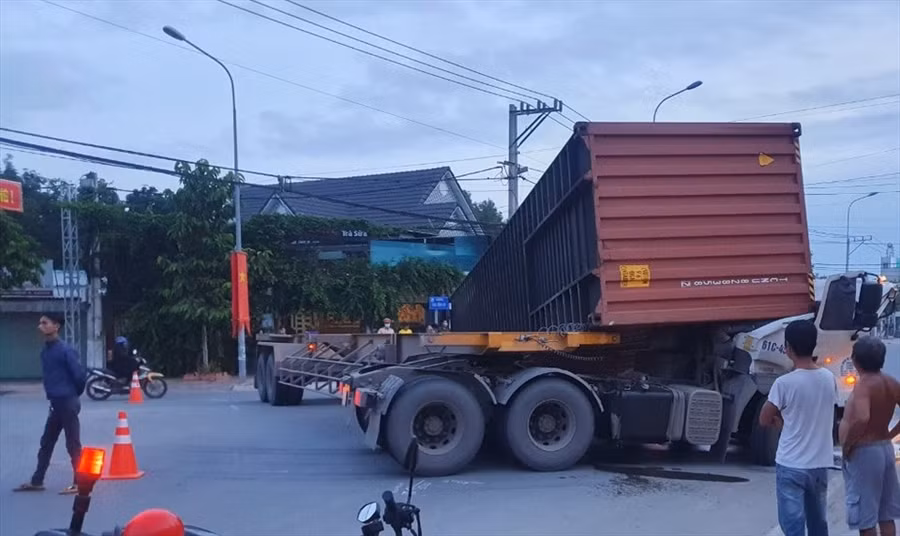 | Thùng xe container lật đè tài xế tử vong trong cabin ở Bình Dương |