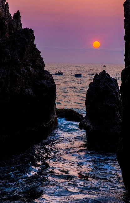 Hãy thư giãn và chờ đợi điều kỳ diệu phía chân trời… Bầu trời chuyển màu từ tím sang hồng rồi mặt trời trồi lên từ mặt biển như một quả cam đỏ ối. Đôi khi mặt trời mọc từ những con tàu hay từ một đám mây huyền ảo nào đó. Ta như nuốt từng khoảnh khắc, từng sắc thái của tự nhiên và chìm vào không gian trữ tình, say đắm…