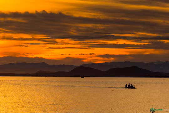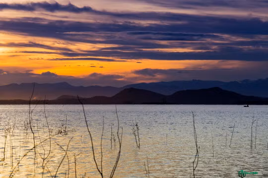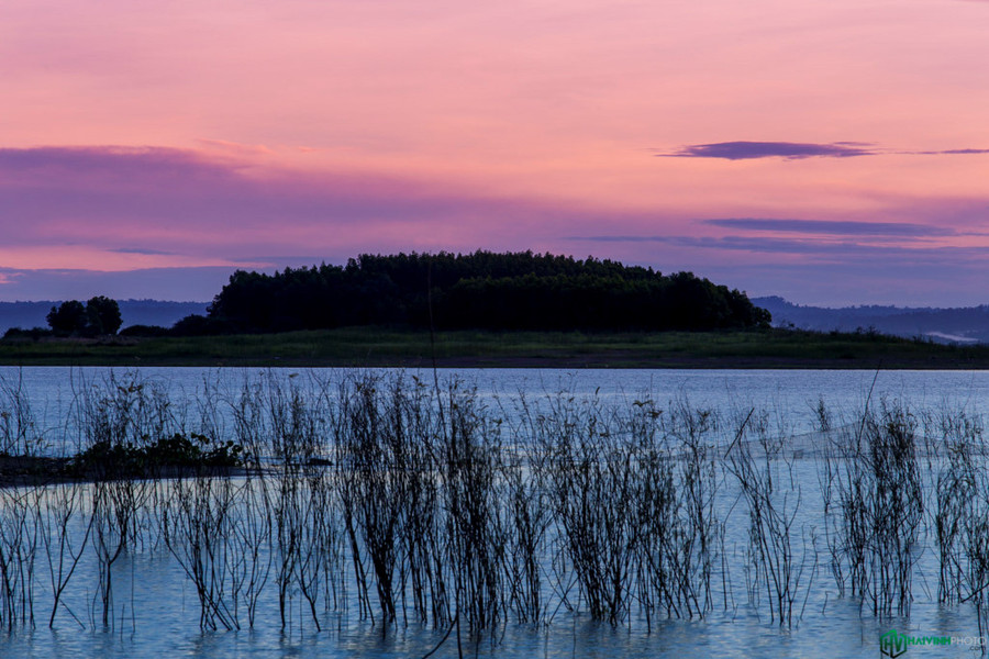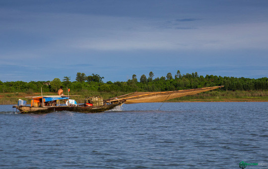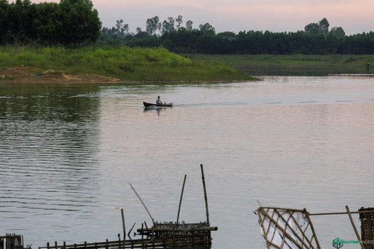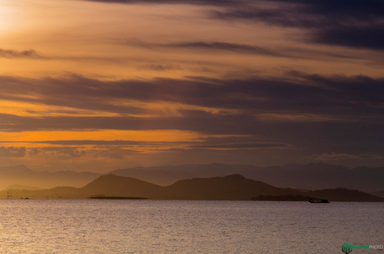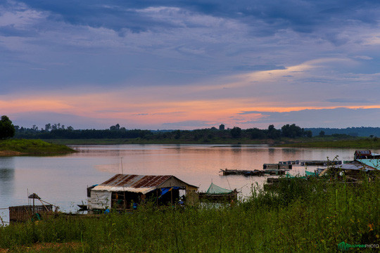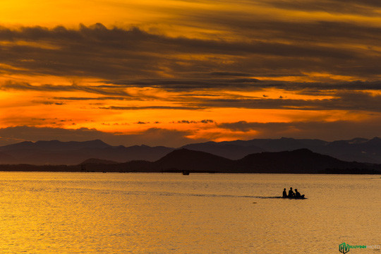 Những dãy núi chập chùng phía sau càng làm cho cảnh bình minh vùng sông nước thêm phần tráng lệ, lãng mạn.