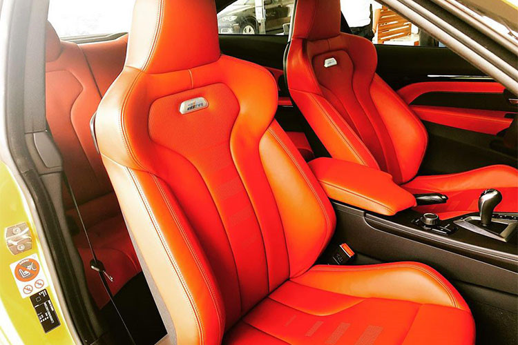 Ghế ngồi bọc da màu cam thiết kế kiểu xe đua với thành ghế nhô cao ôm sát người lái, bọc da màu đỏ gắn logo M ở tựa lưng. Ghế lái có khả năng chỉnh điện, nhớ vị trí. Vô lăng thể thao 3 chấu, tích hợp một số phím chức năng hỗ trợ người lái, phía sau có lẫy chuyển số thể thao...