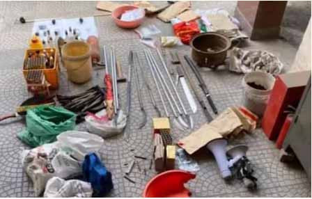 Số hung khí, vũ khí nguy hiểm cơ quan Công an thu giữ được - Ảnh: Công an TP Hà Nội