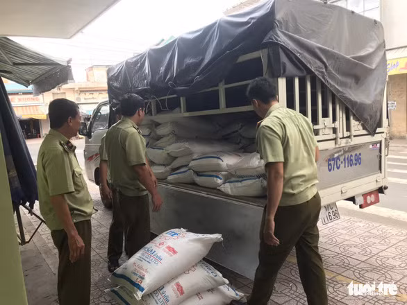 Gần đây Cục Quản lý thị trường tỉnh An Giang cũng liên tục bắt giữ nhiều vụ buôn lậu đường cát Thái Lan không hóa đơn, chứng từ nhưng chỉ dừng lại ở mức tịch thu và xử phạt vi phạm hành chính mà không xử lý hình sự được - Ảnh: BỬU ĐẤU