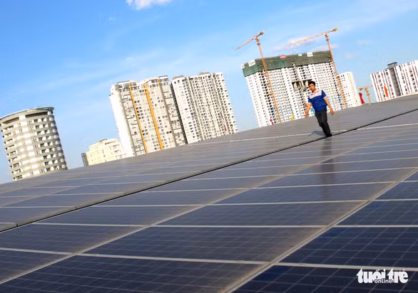 Một toà nhà tại quận 7 (TP.HCM) mới đưa vào vận hành hệ thống điện mặt trời trên mái nhà - Ảnh: NGỌC HIỂN