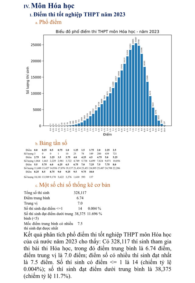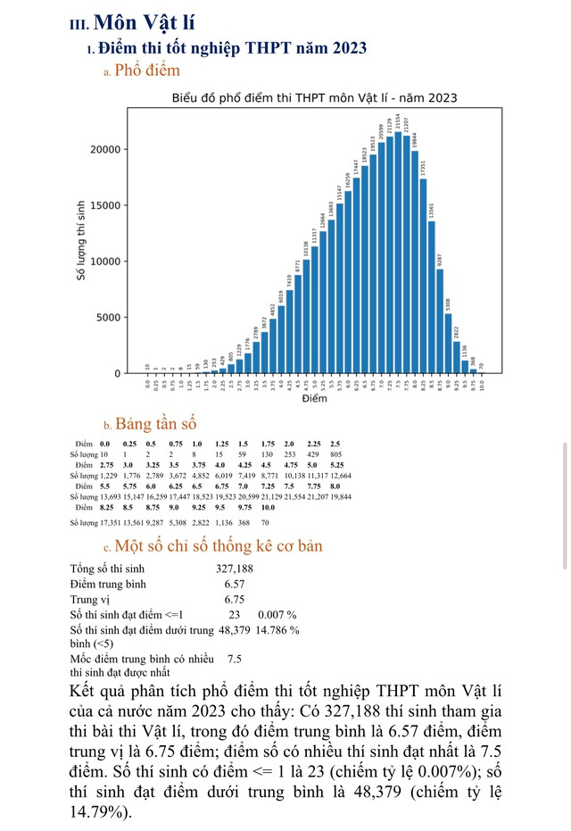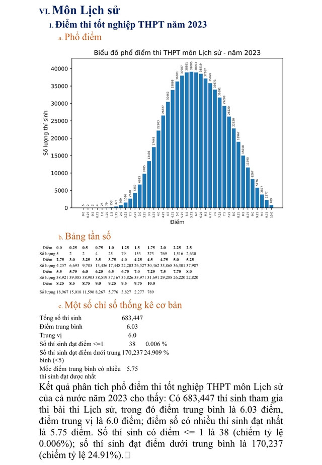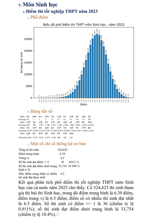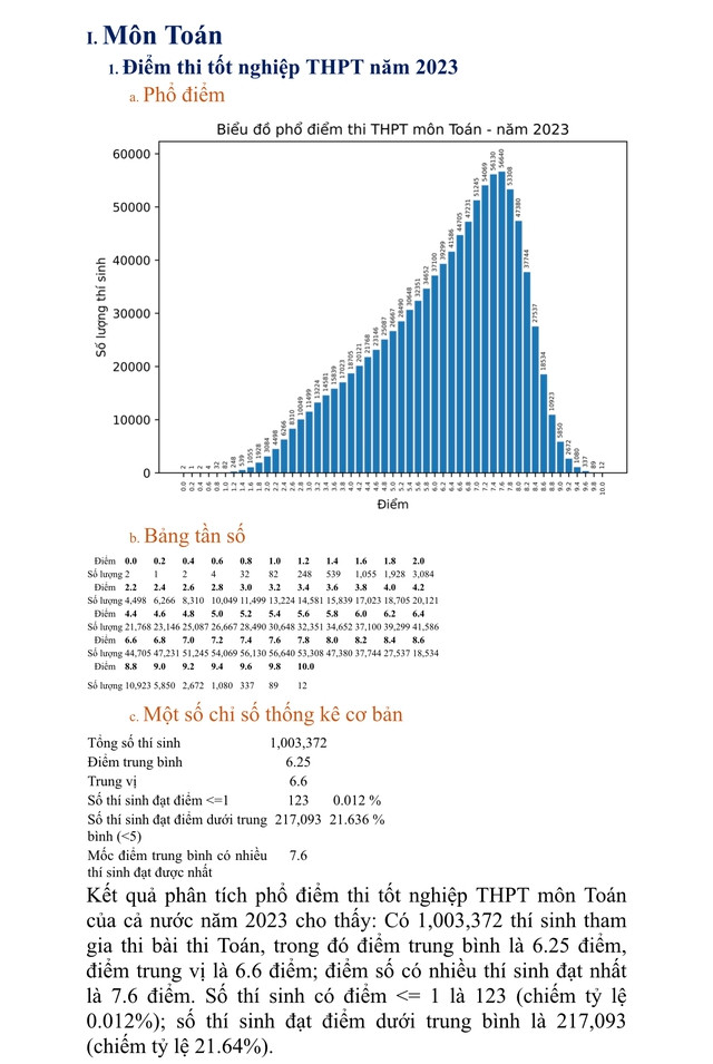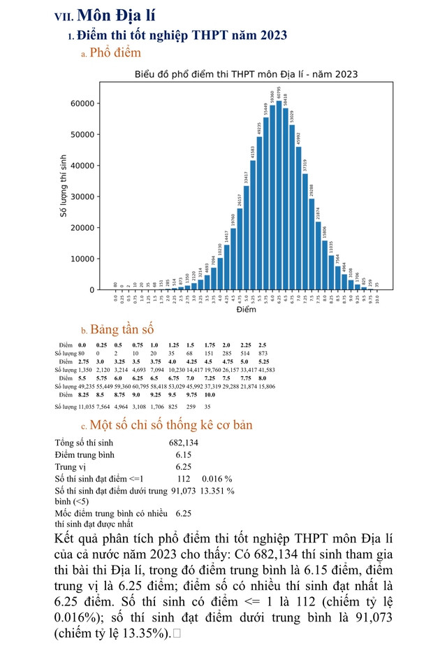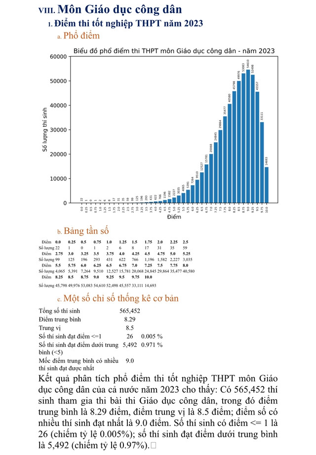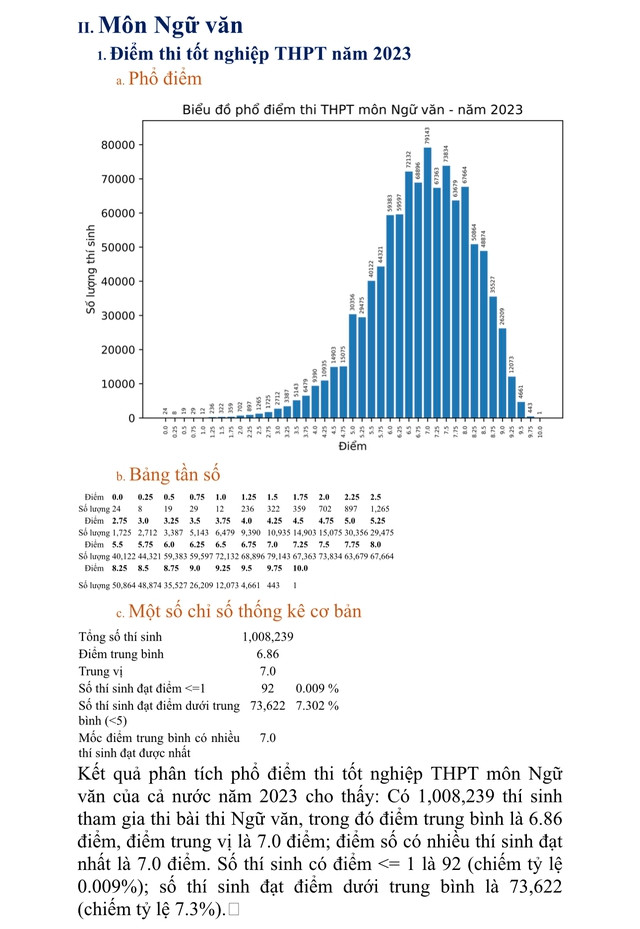 Phổ điểm thi tốt nghiệp THPT của từng môn năm 2023 như sau:
