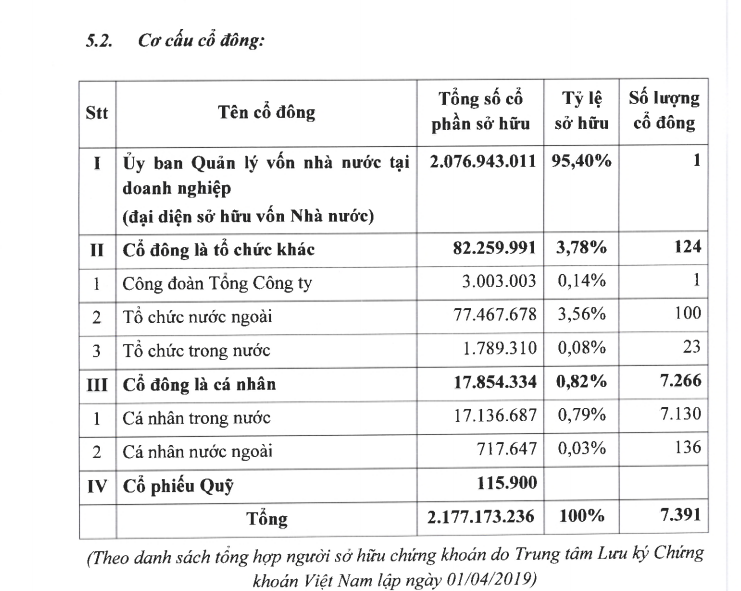 Cơ cấu cổ đông của ACV tính đến ngày 1/4/2019.