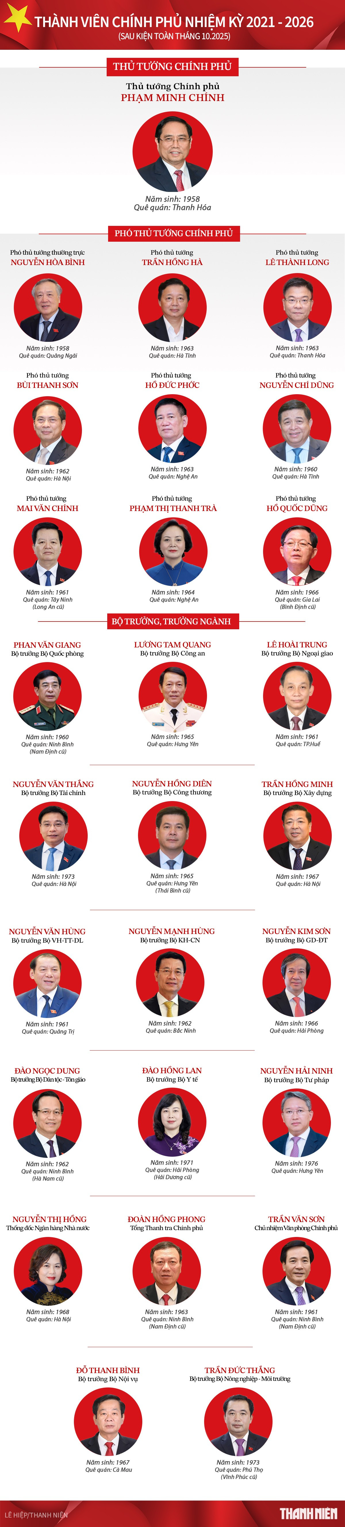 Infographic Bộ máy lãnh đạo Chính phủ sau kiện toàn tháng 10.2025