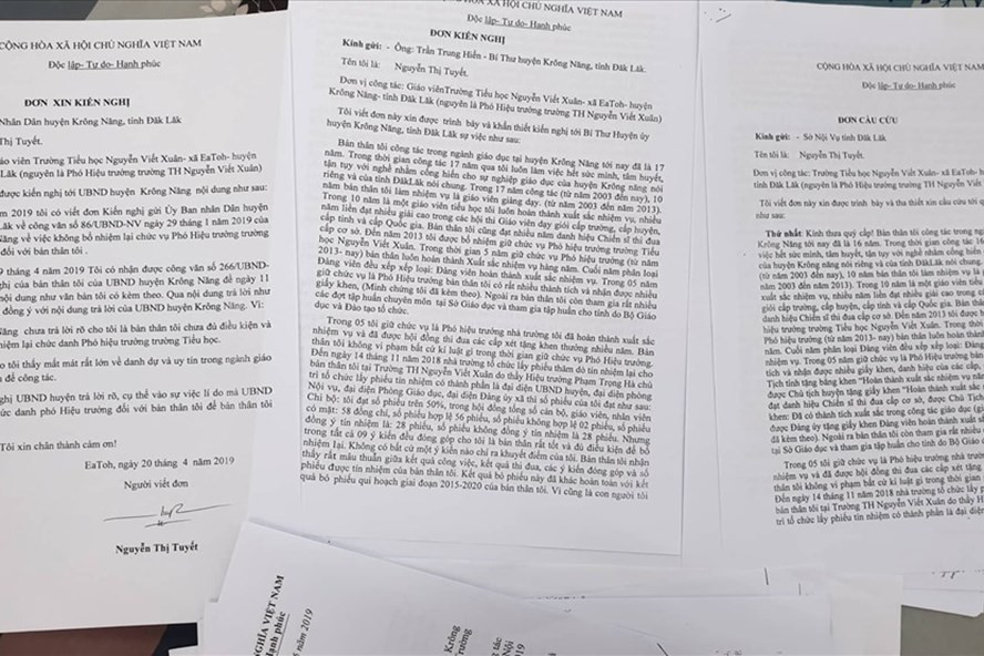 Bà Nguyễn Thị Tuyết – giáo viên Trường tiểu học Nguyễn Viết Xuân (xã Ea Troh, huyện Krông Năng, Đắk Lắk) có đơn khiếu nại gửi UBND tỉnh Đắk Lắk về việc huyện Krông Năng không bổ nhiệm lại chức vụ Phó hiệu trưởng đối với bà.