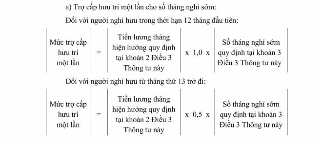 Thông tư quy định nếu đủ điều kiện và được cơ quan có thẩm quyền quyết định cho nghỉ hưu trước tuổi thì được hưởng ngay lương hưu theo quy định của pháp luật về bảo hiểm xã hội mà không bị trừ tỷ lệ lương hưu do việc nghỉ hưu trước tuổi đồng thời được hưởng trợ cấp hưu trí một lần, trợ cấp theo số năm nghỉ sớm và trợ cấp theo thời gian công tác có đóng bảo hiểm xã hội bắt buộc.
