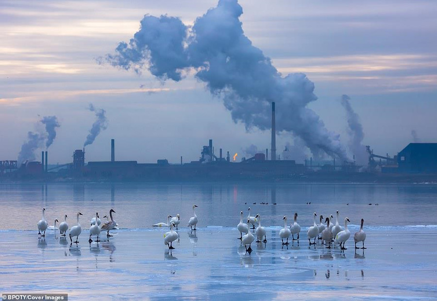 Giải bạc hạng mục Chim trong vườn và đô thị thuộc về tác phẩm của nhiếp ảnh gia Meera Sulaiman người Canada. Anh chụp bầy thiên nga sinh sống tại hồ Ontario, nơi được coi là khu mỏ than độc hại nhất của Canada với lượng chất thải công nghiệp khổng lồ tích tụ trong 100 năm.