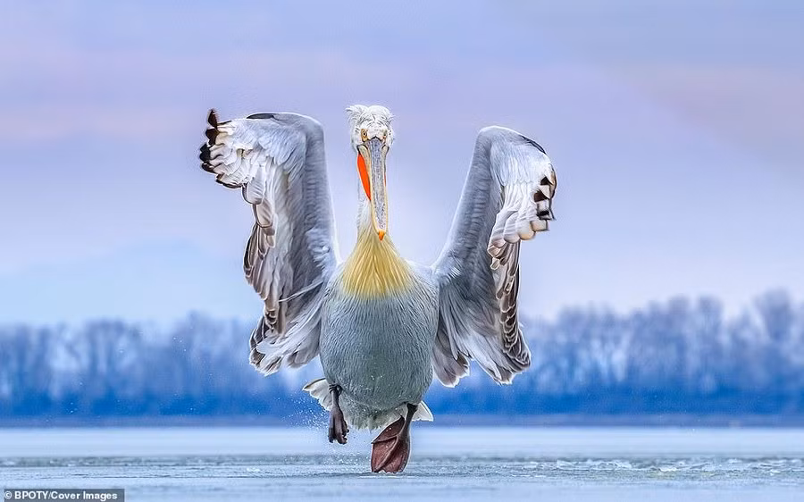 Bức ảnh chim bồ nông "nhảy múa" trên dòng sông băng ở Hy Lạp của tác giả người Anh, Caron Steele, đã giành giải thưởng cao nhất cuộc thi Nhiếp ảnh gia chim muông 2019.