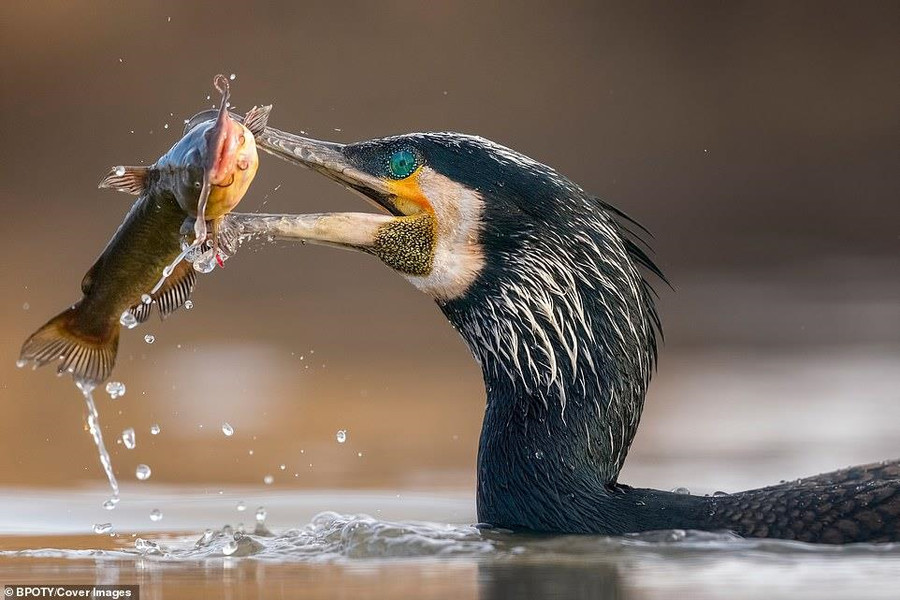 Một tác phẩm khác cũng của nhiếp ảnh gia Thomas Hinsche, anh chụp lại cảnh con chim cốc đang bắt cá trê lùn trong công viên quốc gia Hungary. Bức ảnh đoạt giải đồng hạng mục Đầu tư tốt nhất.