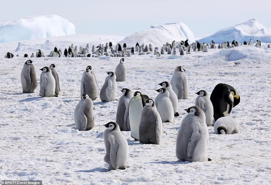 Hình ảnh những con chim cánh cụt hoàng đế tại Nam Cực của nhiếp ảnh gia người Anh, Martin Grace, đã giành giải vàng hạng mục Cuộc gặp gỡ truyền cảm hứng.