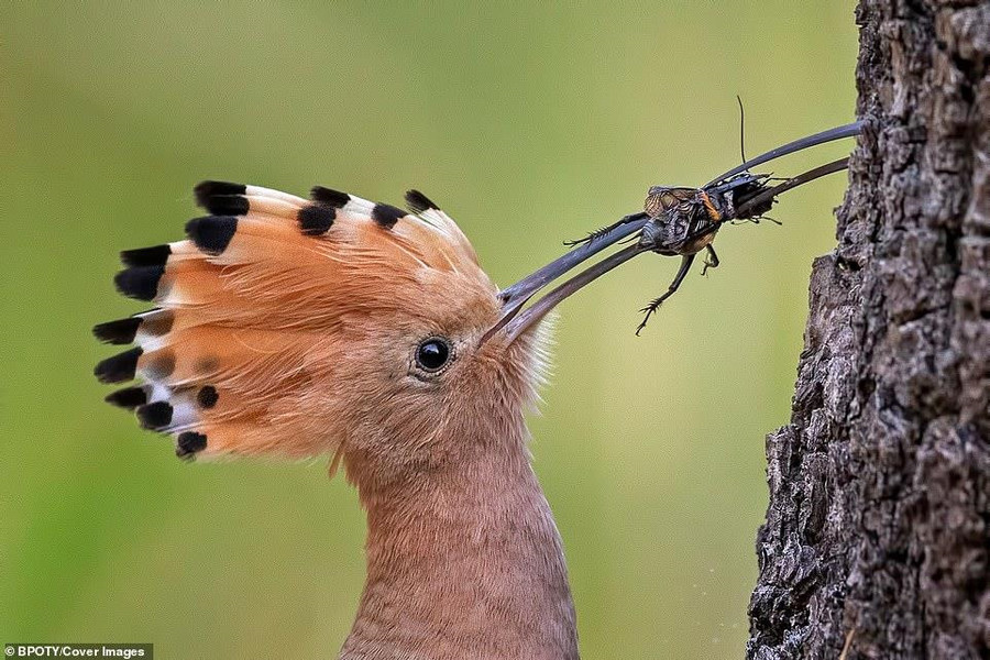 Bức ảnh chụp con chim hoopoe châu Âu (thuộc họ Đầu Rìu) đang bắt mồi của nhiếp ảnh gia người Đức, Thomas Hinsche, tại bang Sachsen-Anhalt (Đức) đã giành giải vàng ở Hạng mục đầu tư tốt nhất.