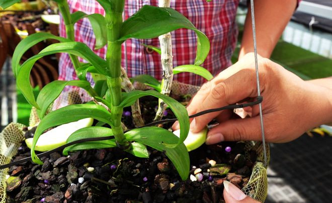 | Lan cực kỳ “khó tính”, chỉ cần thay đổi hướng nắng là cây sựng lại, vì vậy phải chăm sóc rất tỉ mỉ. ẢNH: DUY TÂN |